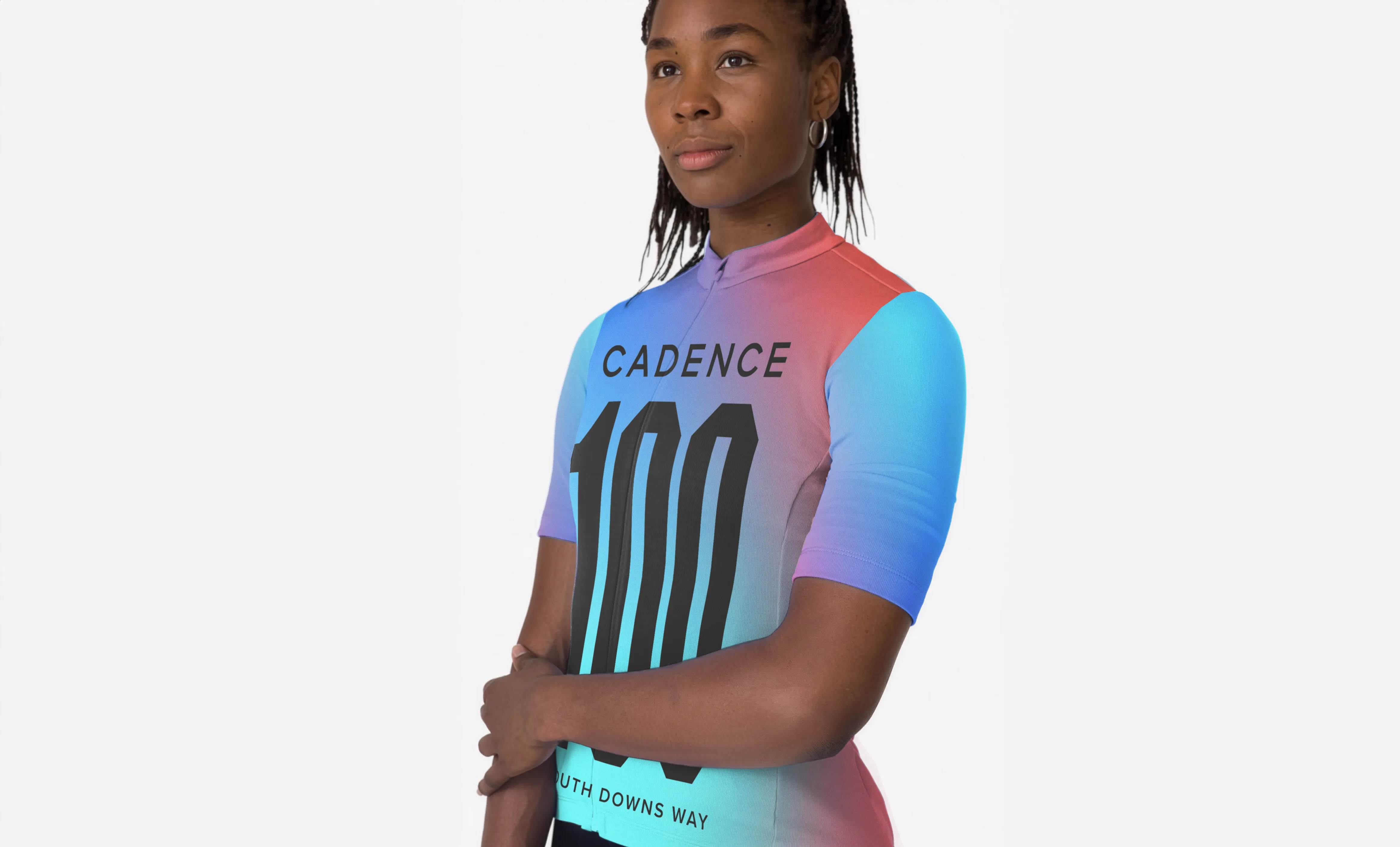 Taking inspiration from classic woven patches, we created the Cadence 100 logo. We chose a rectangle instead of the classic circular badge, as it's application on bikes, bags and water bottles etc would have more impact. We created a gradient using existing Cadence colours for the background, the gradient ties in with the existing Cadence branding but also encourages the idea of movement. We designed a staggered pattern to incorporate the gradient into the embroidered patch.