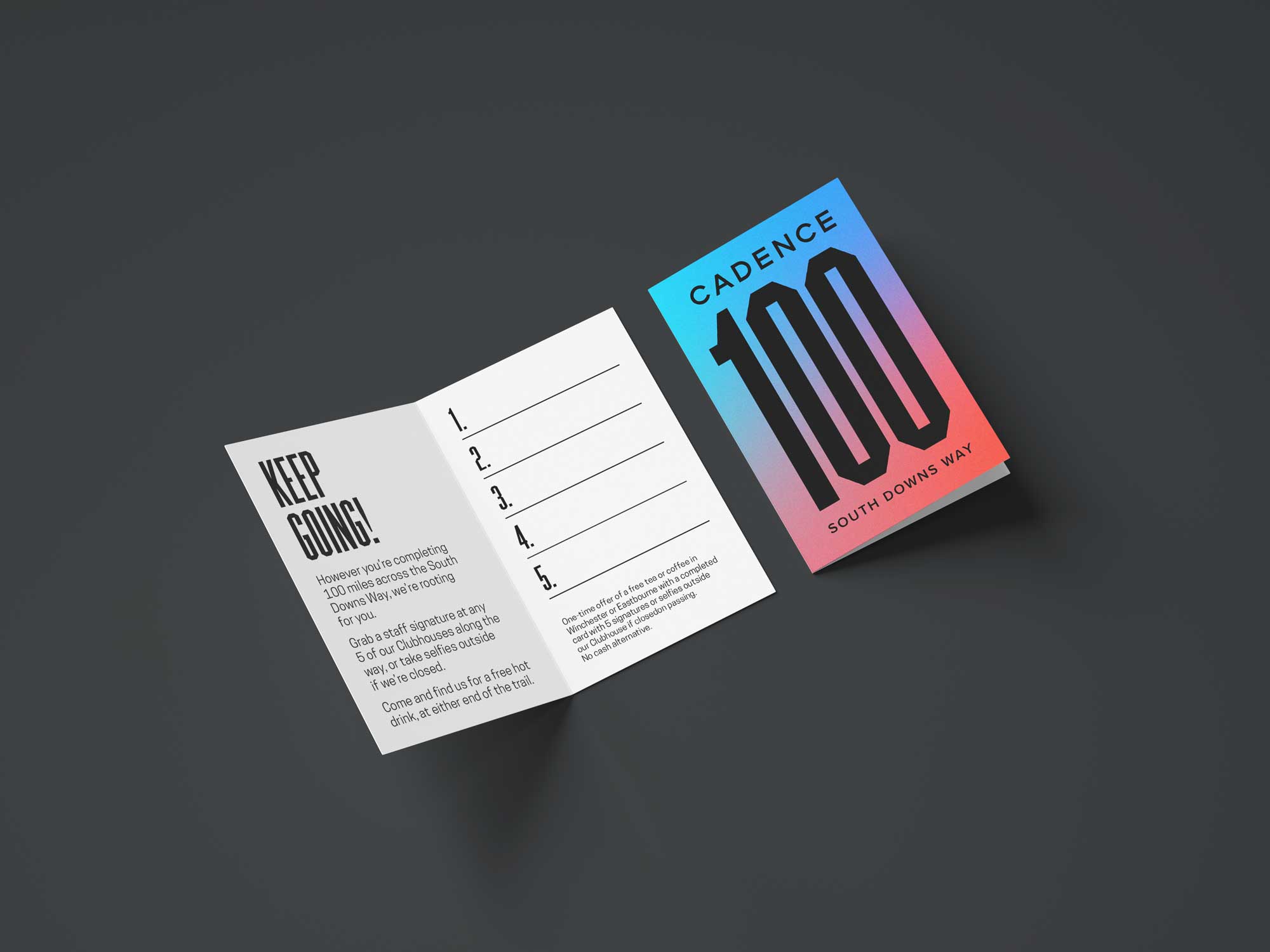 The Cadence team tasked us with creating a visual identity for the South Downs Way trail, aligning the national park image with Cadence, and creating a connection between completing the route and visiting all the Cadence Clubhouses you pass along the way.