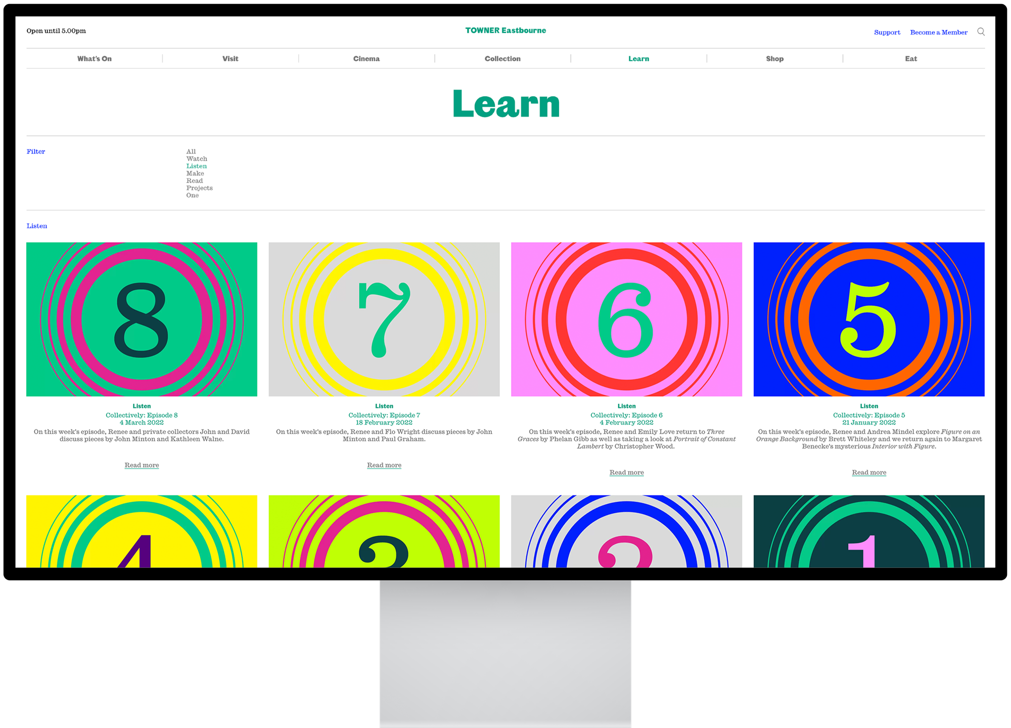 Towner tasked us with creating a sub-brand for their Collectively Podcast. For the logo we experimented with the concept of sound-waves, whilst using the Towner's fonts and colours to create brand consistency. The additional frame motif represents the different points of view being addressed in the podcast.
