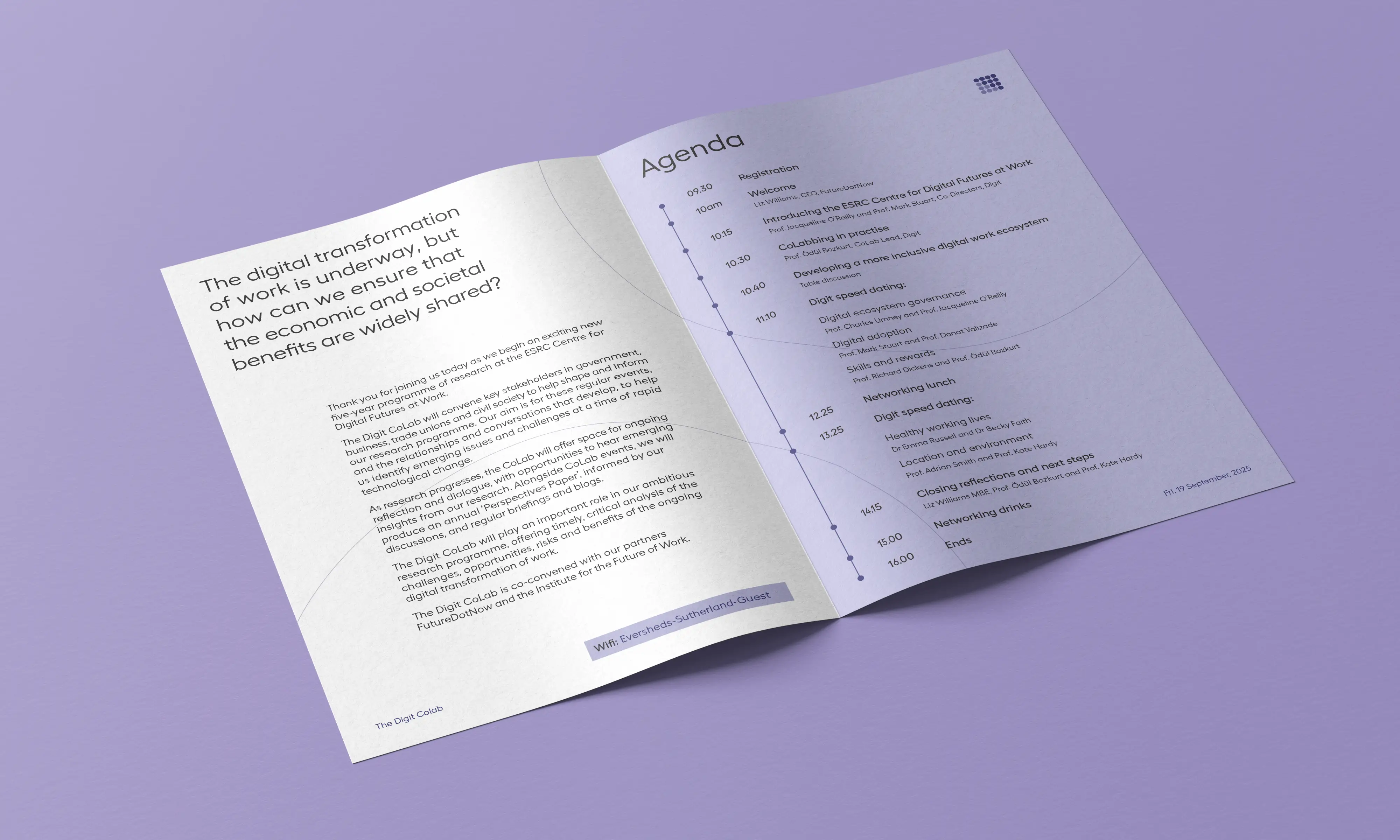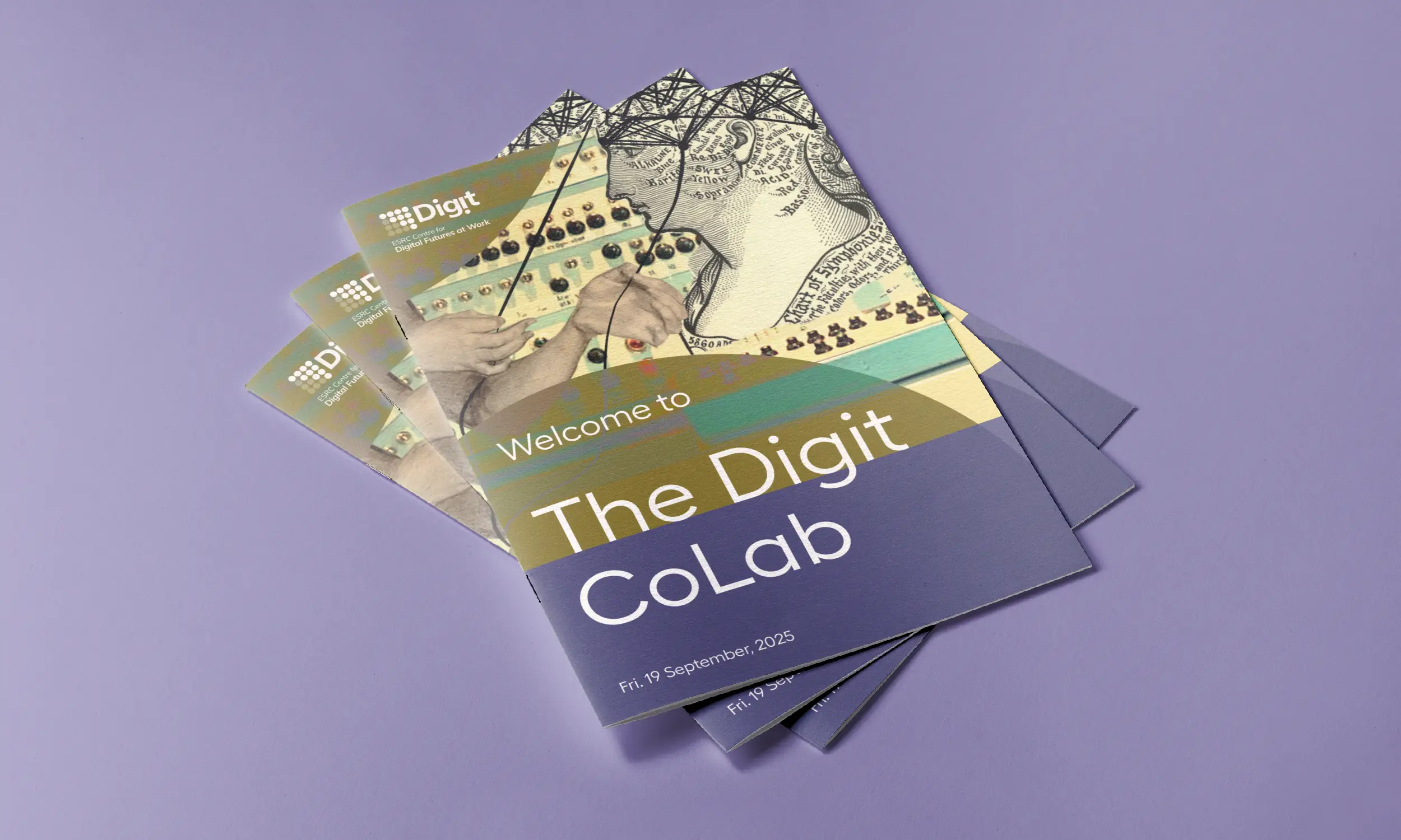 Digit are holding an 'CoLab' event in London to communicate Digit's research agenda. Using the ESRC Centre's visual identity and logo along side a selection of images from the Better Images of AI library, design a set of 5 posters, 5 postcards, and a 4-page A5 leaflet to brand the event. The materials should also serve as a takeaway to encourage future engagement.