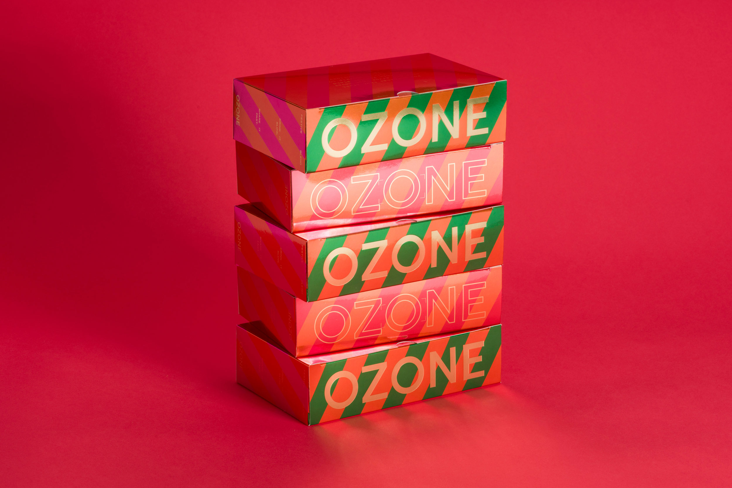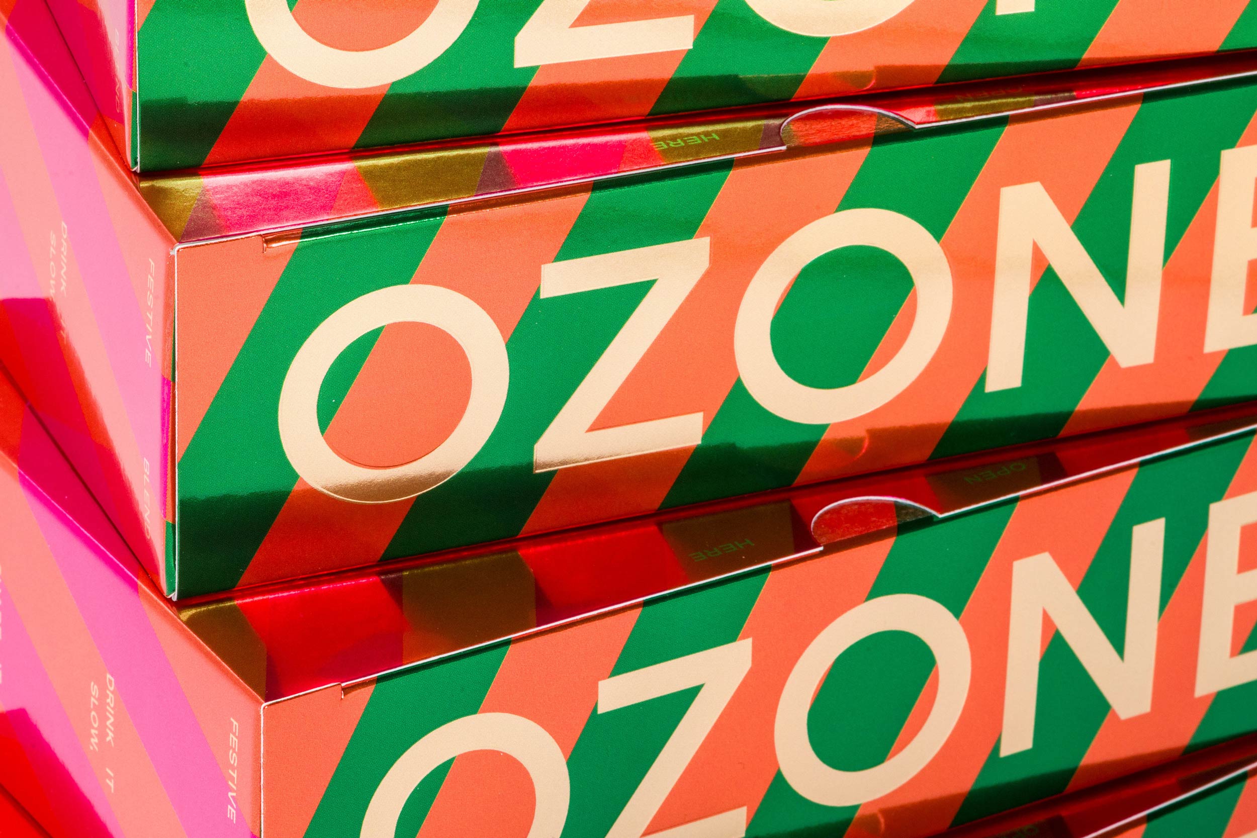 Create a visual identity for the festive campaign, centred around the festive blend box. Make it super giftable, bright and full of joy. The box must be easy to pack and ship whilst standing out on Ozone's retail shelves. The wider identity should tie all the elements together with clear and concise visuals.